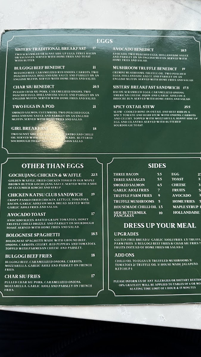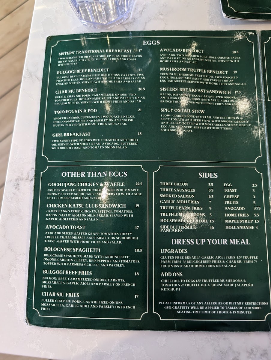 Welcome to Sisters & Co Markham, a delightful brunch spot located at 7725 Birchmount Rd Unit 18, Markham, ON. This inviting café has garnered rave reviews for its creative fusion of traditional brunch favorites with Asian flavors. The standout dishes include the indulgent Chicken and Waffles and the delectable French Toast, both of which combine savory and sweet notes for a memorable meal.